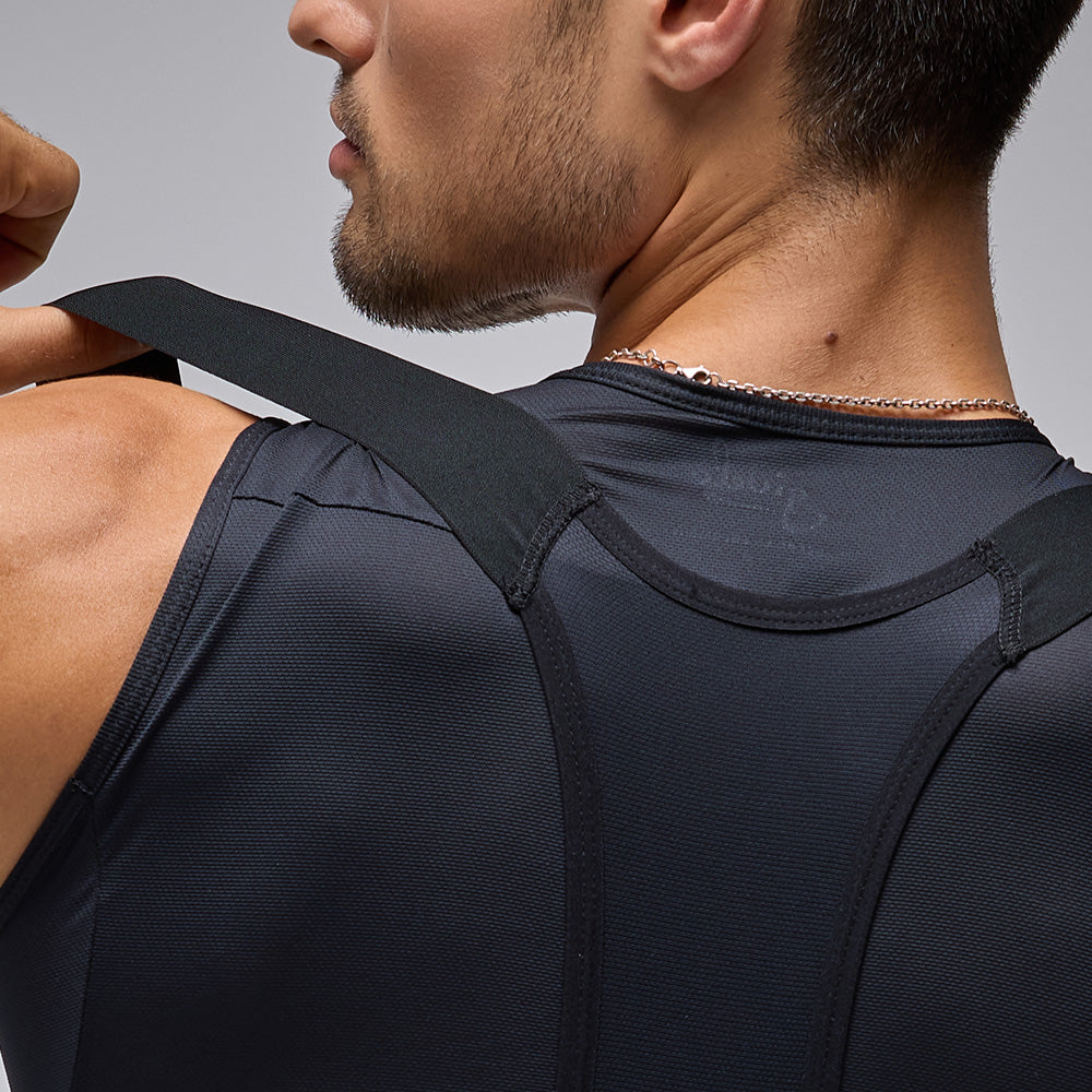 El tejido Italiano principal de estos bib shorts ha sido diseñado especialmente para el ciclismo. Es duradero, compresivo y producido de manera eco-friendly. Su fina estructura está certificada por OEKO-TEX® y utiliza poliéster 100% reciclado.